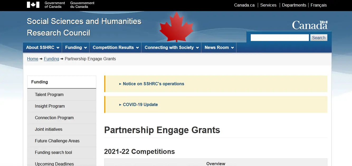Partnership Engage Grants by Social Sciences and Humanities Research Council