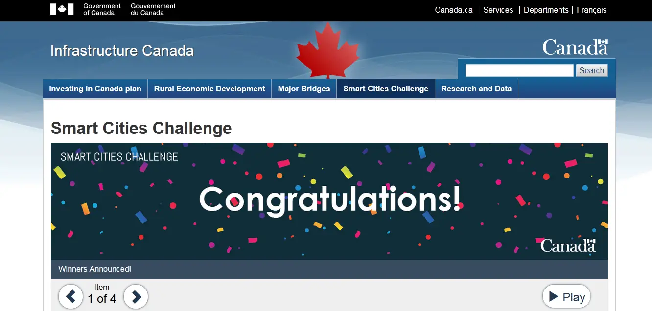 The Smart Cities Challenge is a national competition available to all municipalities, local and regional governments, and Indigenous communities (First Nations, Métis, and Inuit) in Canada. The Challenge encourages municipalities to use a smart city strategy to better their inhabitants’ lives by leveraging innovation, data, and connected technology.