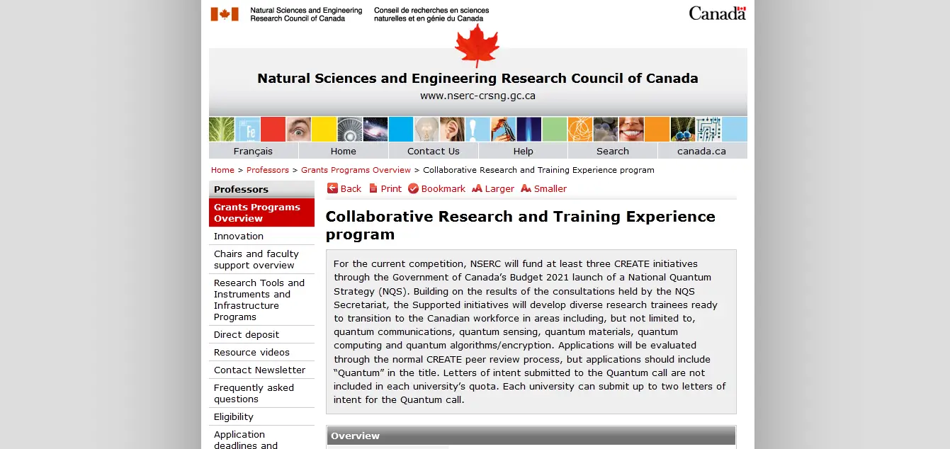 Suitable Candidates: There are requirements for applicants, co-applicants, and institutions. Only Canadian universities that are NSERC-eligible may apply for CREATE grants, and the applicant must be employed there in a position that qualifies. Collaborators may include researchers from non-eligible organizations. Make sure you take into account the eligibility requirements for applicants, co-applicants, and collaborators listed under “Eligibility criteria” on the NSERC website.