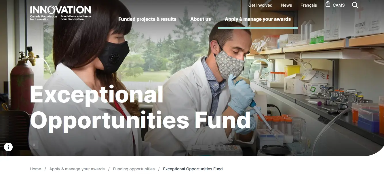 Eligible costs: The CFI will contribute up to 40% of the infrastructure project’s overall eligible costs. The institution(s) and/or appropriate funding partners are required to contribute the remaining amount.
