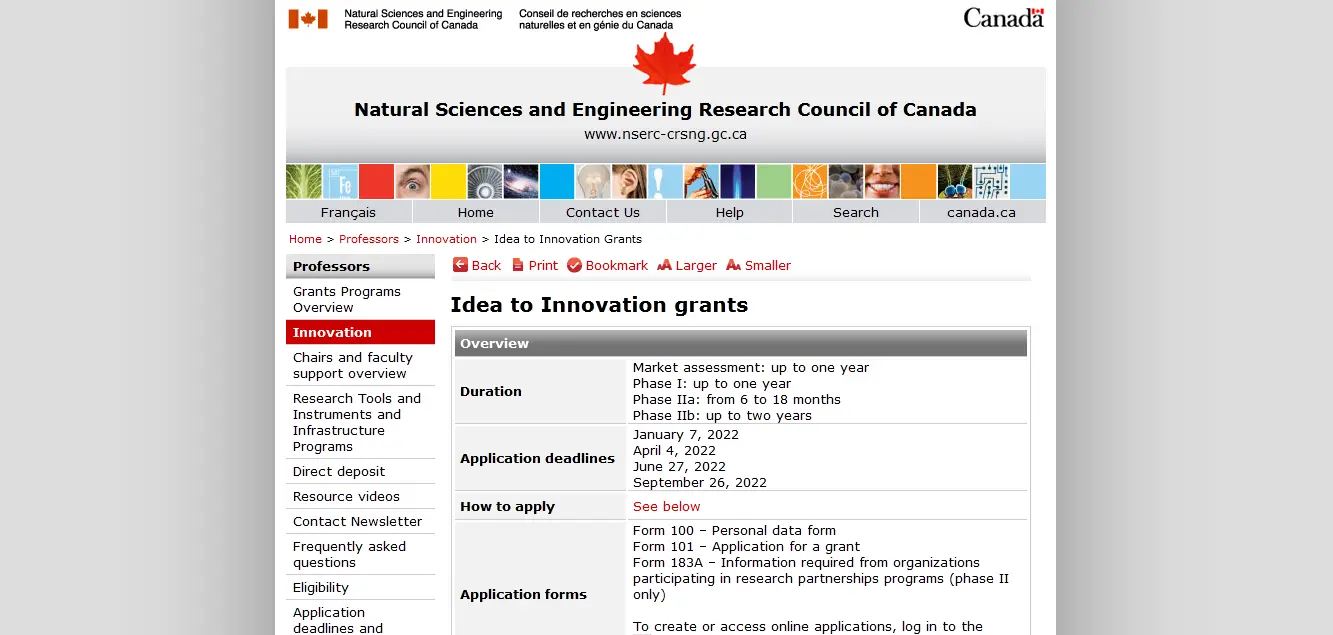 Idea to Innovation (I2I) by Natural Sciences and Engineering Research Council of Canada