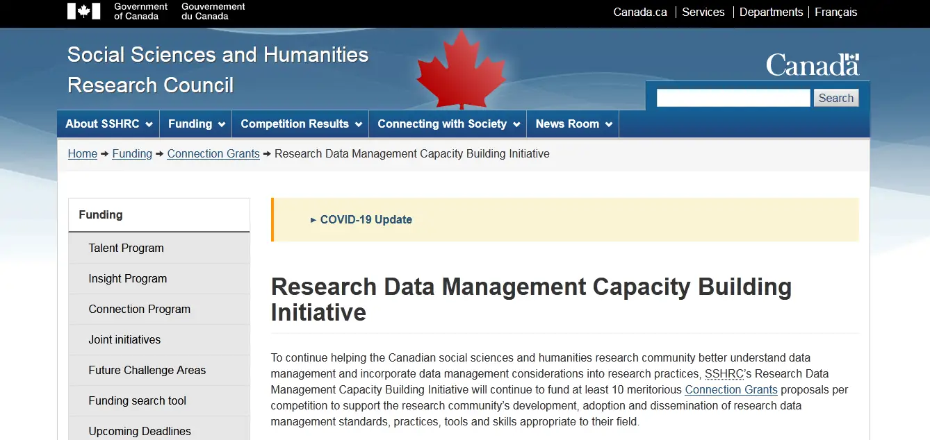 The SSHRC’s Research Data Management Capacity Building Initiative will continue to support the development, adoption, and dissemination of research data management standards, practices, tools, and techniques to help the Canadian social sciences and humanities research community better understand data management and incorporate data management considerations into research practices.